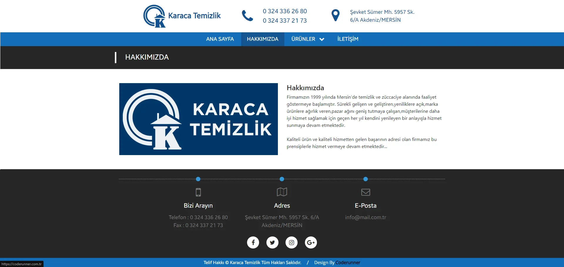 Karaca Temizlik için hazırladığımız, yüksek kalitede, Google SEO ( Arama Motoru Optimizasyonu ) ve mobile (responsive) uyumlu içerik yönetim paneline sahip web tasarım hizmeti.