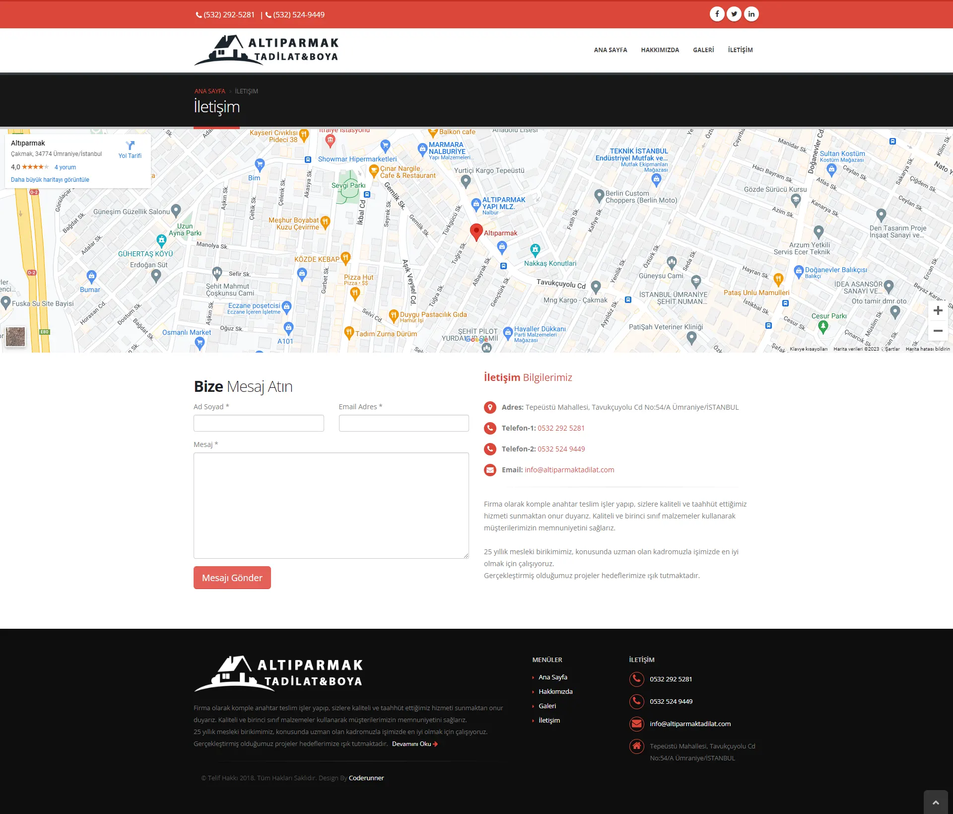Altıparmak Tadilat Ve Boya için hazırladığımız, yüksek kalitede, Google SEO ( Arama Motoru Optimizasyonu ) ve mobile (responsive) uyumlu web tasarım hizmeti.