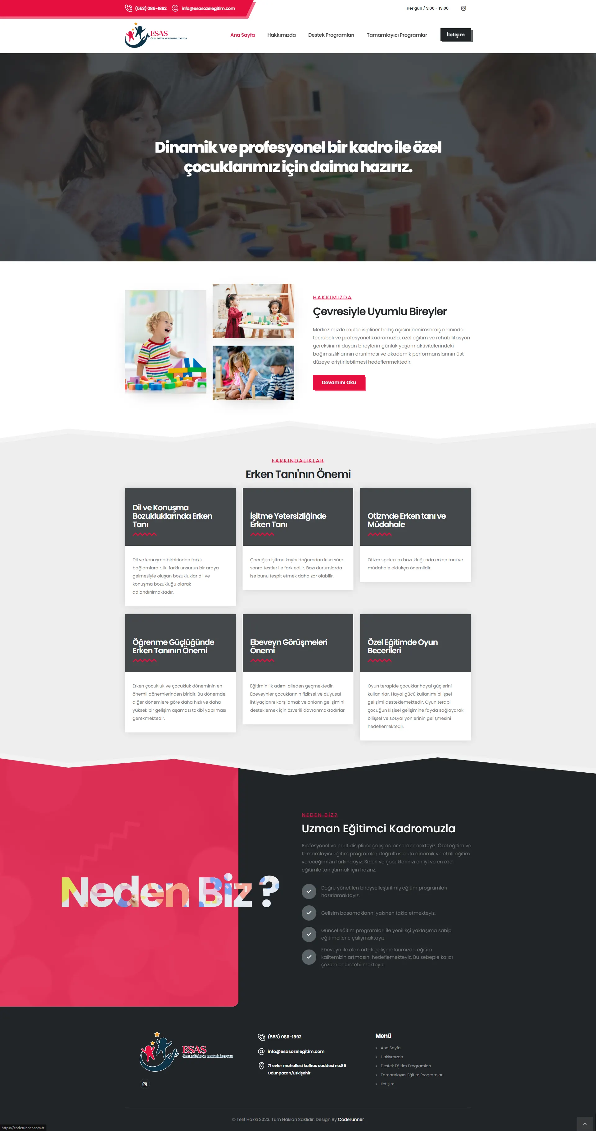 Özel çocuklarımız için eğitim ve rehabilitasyon hizmeti veren "Esas Özel Eğitim" profesyonel web tasarım hizmeti için bizi tercih etti.